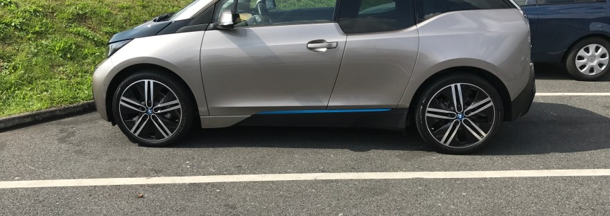 Gut wenn der Reifenhändler gleich nebenan ist, denn diese spezielle Reifengröße des BMW i3 ist natürlich nirgens Lagerware…